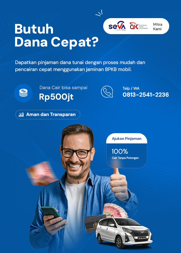 Terkoordinasi langsung dengan SEVA (member of Astra) dan didukung oleh perusahaan pembiayaan terpercaya yang terdaftar dan diawasi oleh OJK.