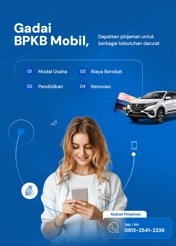 Butuh dana cepat? Gadai BPKB mobil Anda untuk mendapatkan pinjaman dengan proses praktis tanpa ribet. Data aman, bunga kompetitif, dan pembayaran fleksibel.